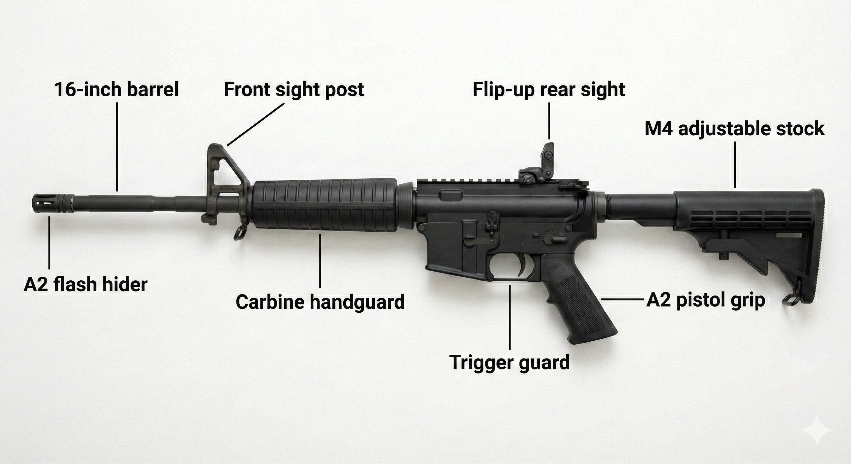 The ideal first AR-15 is straightforward: a 16-inch barrel with a mid-length gas system, a standard carbine or M4-style adjustable stock, and a simple A2 pistol grip. For sights, either a front sight post paired with a rear flip-up or a flat-top upper ready for a red dot works perfectly.