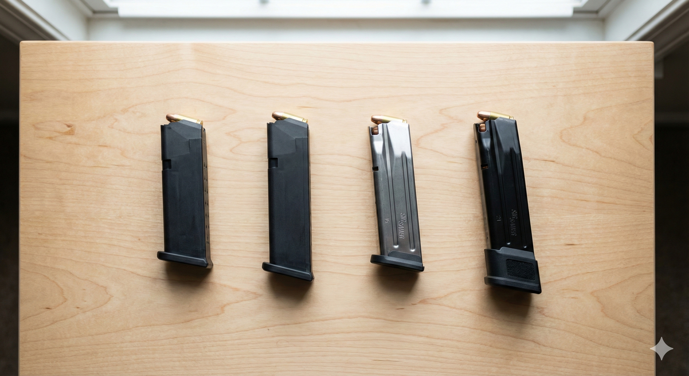 Where things get interesting is backup magazine compatibility. The Glock 19 accepts full-size Glock 17 magazines, giving you 17 rounds with a slightly extended baseplate. The P320 Compact takes full-size P320 magazines as well, offering 17-round or 21-round options depending on the configuration.