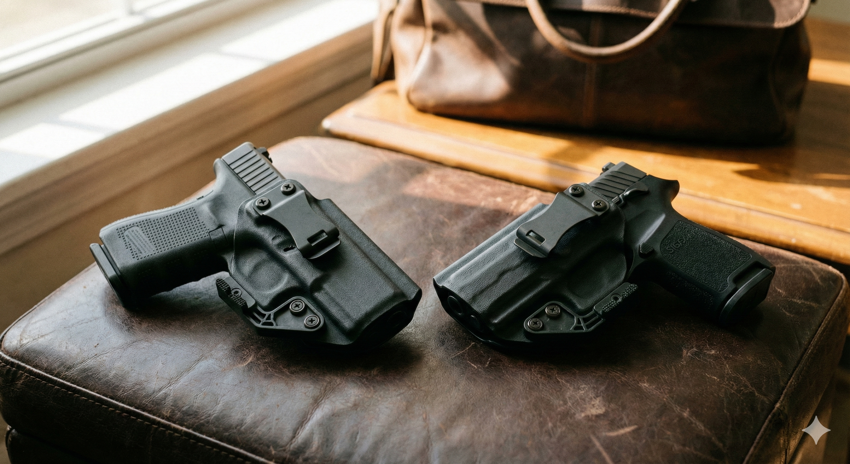 That said, the Glock 19's lower grip height gives it a slight edge for appendix carry, where every bit of vertical real estate matters. The P320's shorter overall length offers no practical concealment advantage—barrel length rarely causes printing issues.
